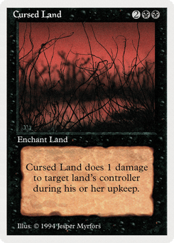Enchant land At the beginning of the upkeep of enchanted land's controller, this Aura deals 1 damage to that player.