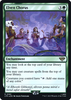 Whenever the Ring tempts you, if you chose a creature other than Galadriel as your Ring-bearer, scry 3. Whenever you scry, you may reveal the top card of your library. If a land card is revealed this way, put it onto the battlefield tapped.
