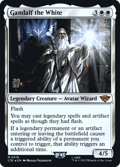 Flash You may cast sorcery spells as though they had flash. Whenever the Ring tempts you, if you chose a creature other than Gandalf as your Ring-bearer, draw a card.