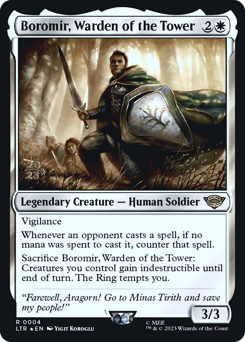 Vigilance Whenever an opponent casts a spell, if no mana was spent to cast it, counter that spell. Sacrifice Boromir: Creatures you control gain indestructible until end of turn. The Ring tempts you.
