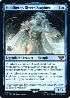 {T}: Move a counter of each kind not on Goldberry from another target permanent you control onto Goldberry. {U}, {T}: Move one or more counters from Goldberry onto another target permanent you control. If you do, draw a card.