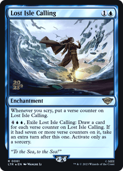 Whenever you scry, put a verse counter on this enchantment. {4}{U}{U}, Exile this enchantment: Draw a card for each verse counter on this enchantment. If it had seven or more verse counters on it, take an extra turn after this one. Activate only as a sorcery.