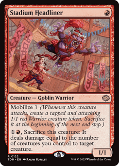 Deathtouch Mobilize X, where X is the number of creature cards in your graveyard. (Whenever this creature attacks, create X tapped and attacking 1/1 red Warrior creature tokens. Sacrifice them at the beginning of the next end step.)