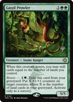 When this creature enters, you may mill cards equal to the number of lands you control. Renew — {1}{G}, Exile this card from your graveyard: Put X +1/+1 counters on target creature, where X is the number of land cards in your graveyard. Activate only as a sorcery.