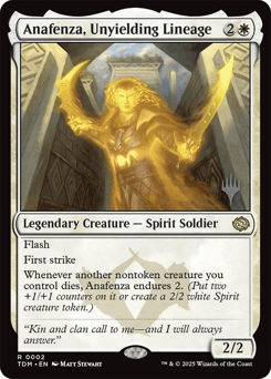 Flash First strike Whenever another nontoken creature you control dies, Anafenza endures 2. (Put two +1/+1 counters on it or create a 2/2 white Spirit creature token.)