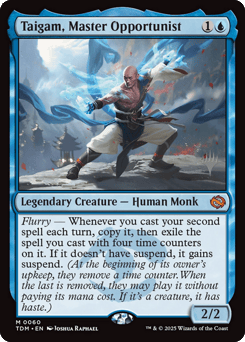 Flurry — Whenever you cast your second spell each turn, copy it, then exile the spell you cast with four time counters on it. If it doesn't have suspend, it gains suspend. (At the beginning of its owner's upkeep, they remove a time counter. When the last is removed, they may play it without paying its mana cost. If it's a creature, it has haste.)
