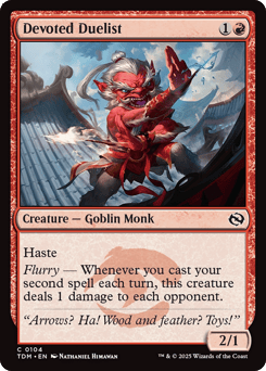 Haste Flurry — Whenever you cast your second spell each turn, this creature deals 1 damage to each opponent.