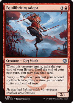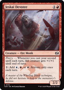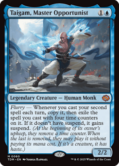 Flurry — Whenever you cast your second spell each turn, copy it, then exile the spell you cast with four time counters on it. If it doesn't have suspend, it gains suspend. (At the beginning of its owner's upkeep, they remove a time counter. When the last is removed, they may play it without paying its mana cost. If it's a creature, it has haste.)