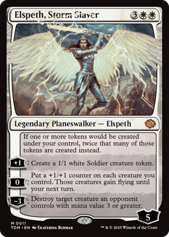 If one or more tokens would be created under your control, twice that many of those tokens are created instead. [+1]: Create a 1/1 white Soldier creature token. [0]: Put a +1/+1 counter on each creature you control. Those creatures gain flying until your next turn. [−3]: Destroy target creature an opponent controls with mana value 3 or greater.