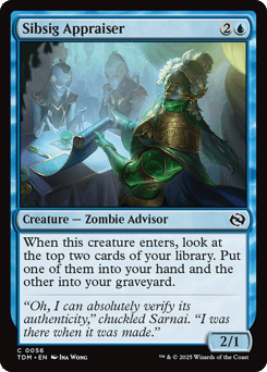 When this creature enters, look at the top two cards of your library. Put one of them into your hand and the other into your graveyard.