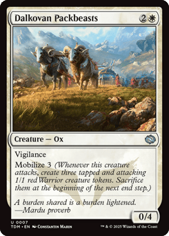 Vigilance Mobilize 3 (Whenever this creature attacks, create three tapped and attacking 1/1 red Warrior creature tokens. Sacrifice them at the beginning of the next end step.)