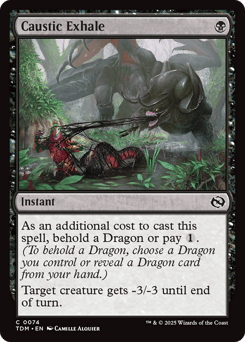 As an additional cost to cast this spell, behold a Dragon or pay {1}. (To behold a Dragon, choose a Dragon you control or reveal a Dragon card from your hand.) Target creature gets -3/-3 until end of turn.