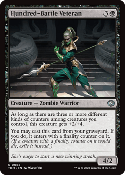As long as there are three or more different kinds of counters among creatures you control, this creature gets +2/+4. You may cast this card from your graveyard. If you do, it enters with a finality counter on it. (If a creature with a finality counter on it would die, exile it instead.)