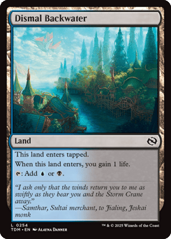 This land enters tapped unless you control an Island or a Swamp. {T}: Add {G}. {3}{G}, {T}: Surveil 2. (Look at the top two cards of your library, then put any number of them into your graveyard and the rest on top of your library in any order.)