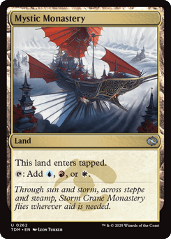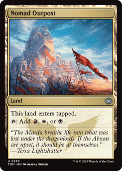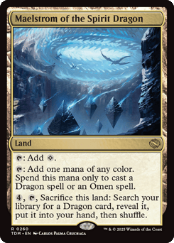 {T}: Add {C}. {T}: Add one mana of any color. Spend this mana only to cast a Dragon spell or an Omen spell. {4}, {T}, Sacrifice this land: Search your library for a Dragon card, reveal it, put it into your hand, then shuffle.