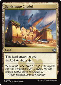 This land enters tapped. {T}: Add {G}, {U}, or {R}.