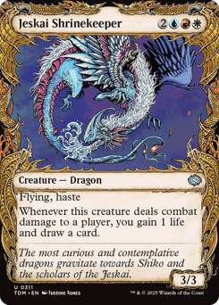 When this creature enters, look at the top six cards of your library. You may reveal an instant, sorcery, or Dragon card from among them and put it into your hand. Put the rest on the bottom of your library in a random order. Untapped Dragons you control have hexproof.