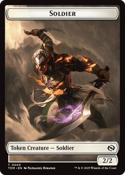 When this enchantment enters, create two 2/2 white Soldier creature tokens. When a Dragon you control enters, return this enchantment to its owner's hand.