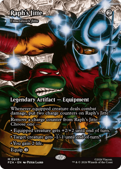 Whenever equipped creature deals combat damage, put two charge counters on Umezawa's Jitte. Remove a charge counter from Umezawa's Jitte: Choose one — • Equipped creature gets +2/+2 until end of turn. • Target creature gets -1/-1 until end of turn. • You gain 2 life. Equip {2}