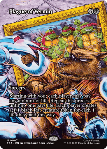 Starting with you, each player may pay any amount of life. Repeat this process until no one pays life. Each player creates a 1/1 black Rat creature token for each 1 life they paid this way.