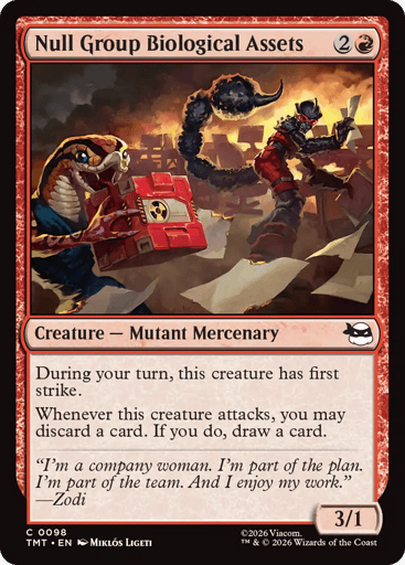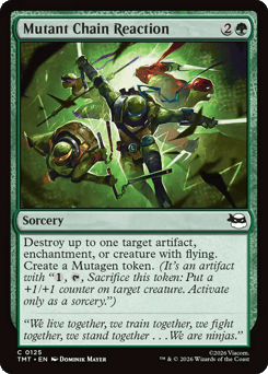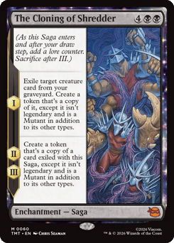 (As this Saga enters and after your draw step, add a lore counter. Sacrifice after III.) I — Exile target creature card from your graveyard. Create a token that's a copy of it, except it isn't legendary and is a Mutant in addition to its other types. II, III — Create a token that's a copy of a card exiled with this Saga, except it isn't legendary and is a Mutant in addition to its other types.