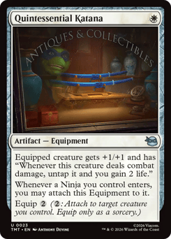 Equipped creature gets +1/+1 and has "Whenever this creature deals combat damage, untap it and you gain 2 life." Whenever a Ninja you control enters, you may attach this Equipment to it. Equip {2} ({2}: Attach to target creature you control. Equip only as a sorcery.)