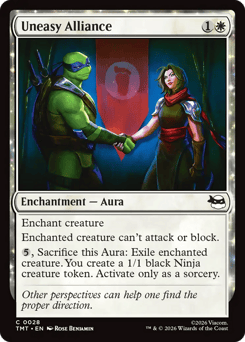 Enchant creature Enchanted creature can't attack or block. {5}, Sacrifice this Aura: Exile enchanted creature. You create a 1/1 black Ninja creature token. Activate only as a sorcery.