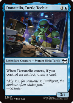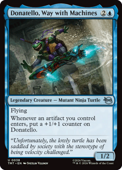 Flying Whenever an artifact you control enters, put a +1/+1 counter on Donatello.