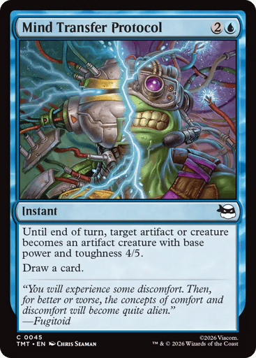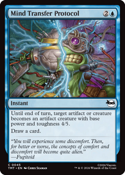 Until end of turn, target artifact or creature becomes an artifact creature with base power and toughness 4/5. Draw a card.