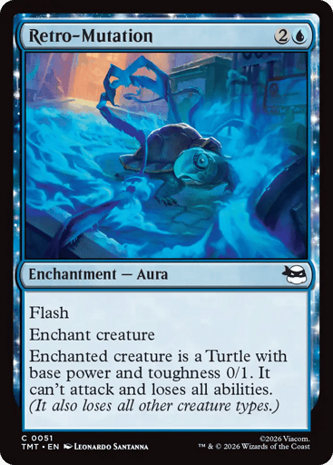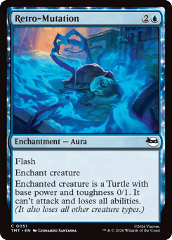Flash Enchant creature Enchanted creature is a Turtle with base power and toughness 0/1. It can't attack and loses all abilities. (It also loses all other creature types.)