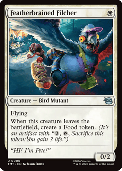 Flying When this creature leaves the battlefield, create a Food token. (It's an artifact with "{2}, {T}, Sacrifice this token: You gain 3 life.")