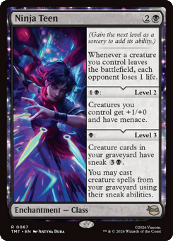 (Gain the next level as a sorcery to add its ability.) Whenever a creature you control leaves the battlefield, each opponent loses 1 life. {1}{B}: Level 2 Creatures you control get +1/+0 and have menace. {B}: Level 3 Creature cards in your graveyard have sneak {3}{B}. You may cast creature spells from your graveyard using their sneak abilities.