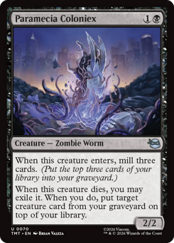 When this creature enters, mill three cards. (Put the top three cards of your library into your graveyard.) When this creature dies, you may exile it. When you do, put target creature card from your graveyard on top of your library.