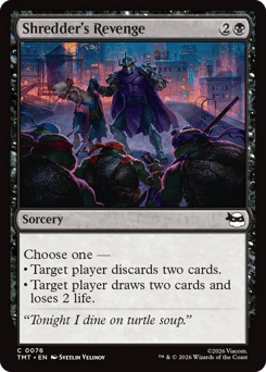 Sneak {3}{B}{B} First strike Whenever Shark Shredder deals combat damage to a player, put up to one target creature card from that player's graveyard onto the battlefield under your control. It enters tapped and attacking that player.