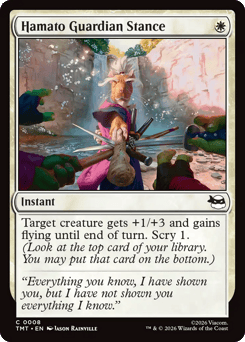 Target creature gets +1/+3 and gains flying until end of turn. Scry 1. (Look at the top card of your library. You may put that card on the bottom.)
