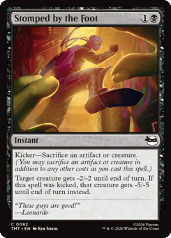 Kicker—Sacrifice an artifact or creature. (You may sacrifice an artifact or creature in addition to any other costs as you cast this spell.) Target creature gets -2/-2 until end of turn. If this spell was kicked, that creature gets -5/-5 until end of turn instead.