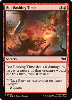 Bot Bashing Time deals 6 damage to target creature. If that creature would die this turn, exile it instead.