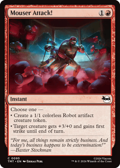 Choose one — • Create a 1/1 colorless Robot artifact creature token. • Target creature gets +3/+0 and gains first strike until end of turn.