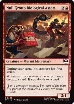 At the beginning of combat on your turn, create a 2/2 red Mutant creature token. It gains haste until end of turn. Destroy it at the beginning of the next end step. {1}{W}: Target attacking creature token gains indestructible until end of turn.