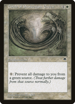 {1}: The next time a green source of your choice would deal damage to you this turn, prevent that damage.