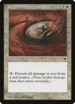 {1}: The next time a red source of your choice would deal damage to you this turn, prevent that damage.