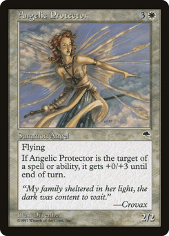 Flying Whenever this creature becomes the target of a spell or ability, this creature gets +0/+3 until end of turn.
