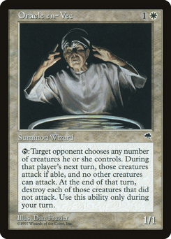 {T}: Target opponent chooses any number of creatures they control. During that player's next turn, the chosen creatures attack if able, and other creatures can't attack. At the beginning of that turn's end step, destroy each of the chosen creatures that didn't attack this turn. Activate only during your turn.