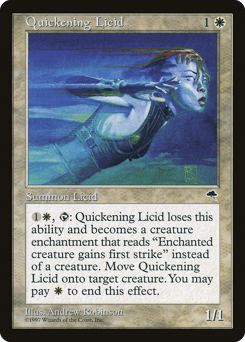 {1}{W}, {T}: This creature loses this ability and becomes an Aura enchantment with enchant creature. Attach it to target creature. You may pay {W} to end this effect. Enchanted creature has first strike.