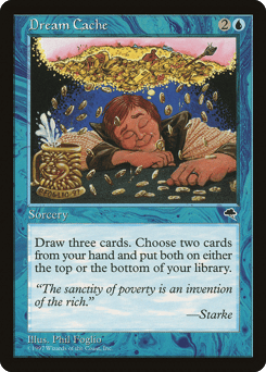 Draw three cards, then put two cards from your hand both on top of your library or both on the bottom of your library.