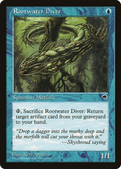 {T}, Sacrifice this creature: Return target artifact card from your graveyard to your hand.