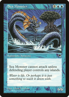 This creature can't attack unless defending player controls an Island.