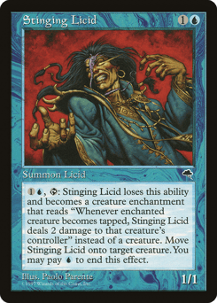 {1}{U}, {T}: This creature loses this ability and becomes an Aura enchantment with enchant creature. Attach it to target creature. You may pay {U} to end this effect. Whenever enchanted creature becomes tapped, this creature deals 2 damage to that creature's controller.