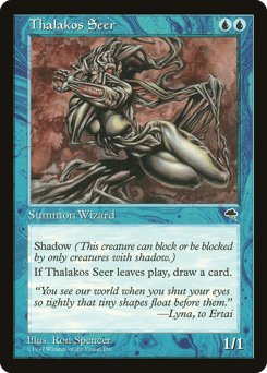Shadow (This creature can block or be blocked by only creatures with shadow.) {U}: Put this creature on top of its owner's library.