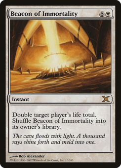 Double target player's life total. Shuffle Beacon of Immortality into its owner's library.